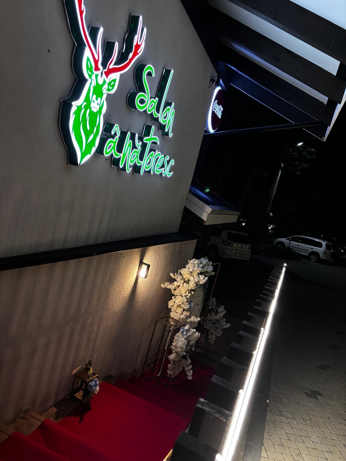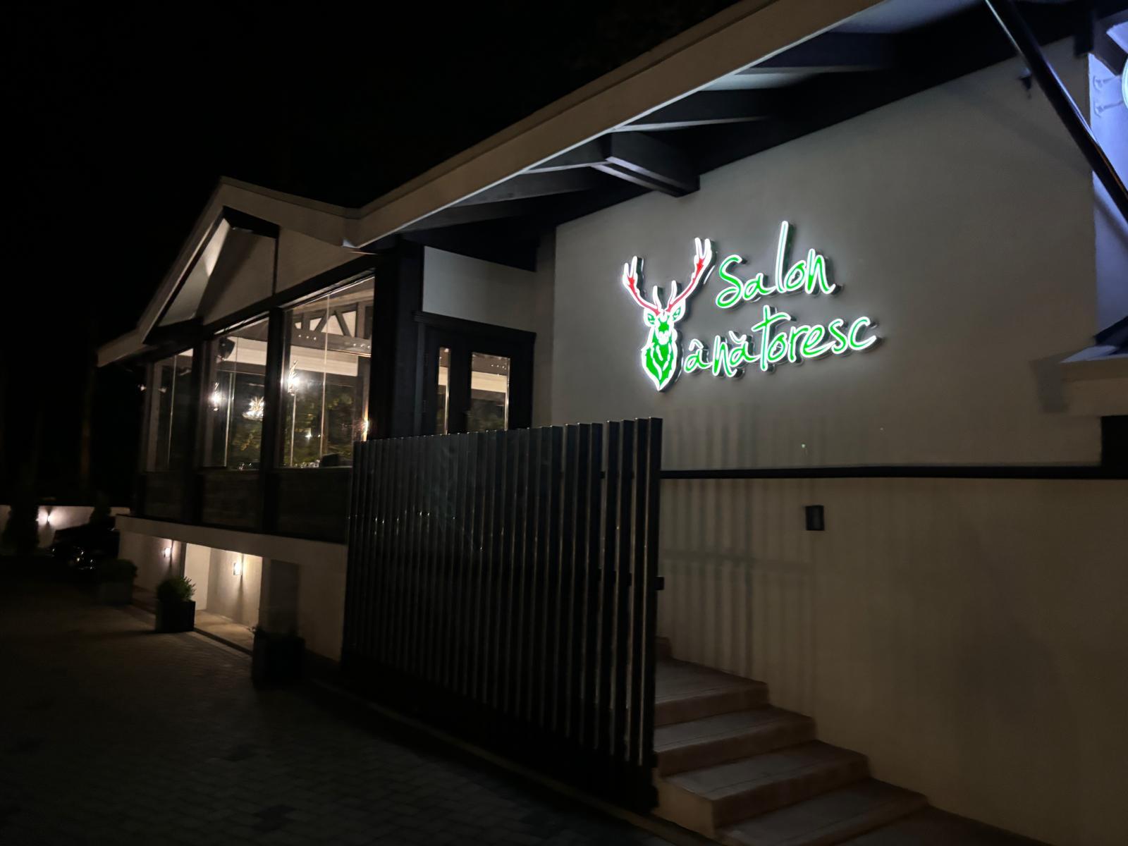 Așezat într-o zonă pitorească, în inima pădurii și departe de zumzetul străzii, care i-ar putea deranja oaspeții, Salon Vânătoresc este decorat într-un stil cu adevărat vânătoresc. Salonul are o capacitate de 50 de locuri. Muzica bună reușește mereu să aducă un strop de veselie în sufletele dumneavoastră și să împletească acordurile cu aroma delicioaselor mâncăruri preparate de către Maestrul bucătar.